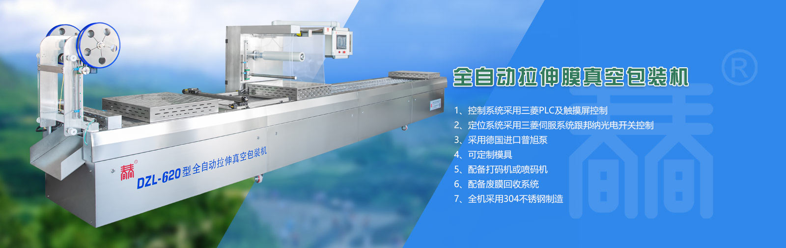 公司专业制造生产真空包装机、拉伸膜真空包装机、盒式真空包装机、斩拌机、滚揉机、盐水注射机、巴氏杀菌流水线等食品机械。其中生产的DZL-420全自动拉伸膜真空包装机、DZL-1000型连续自动真空包装机、真空滚揉机、斩拌机、盐水注射机等都是通过本市技术监督局检验合格的产品。